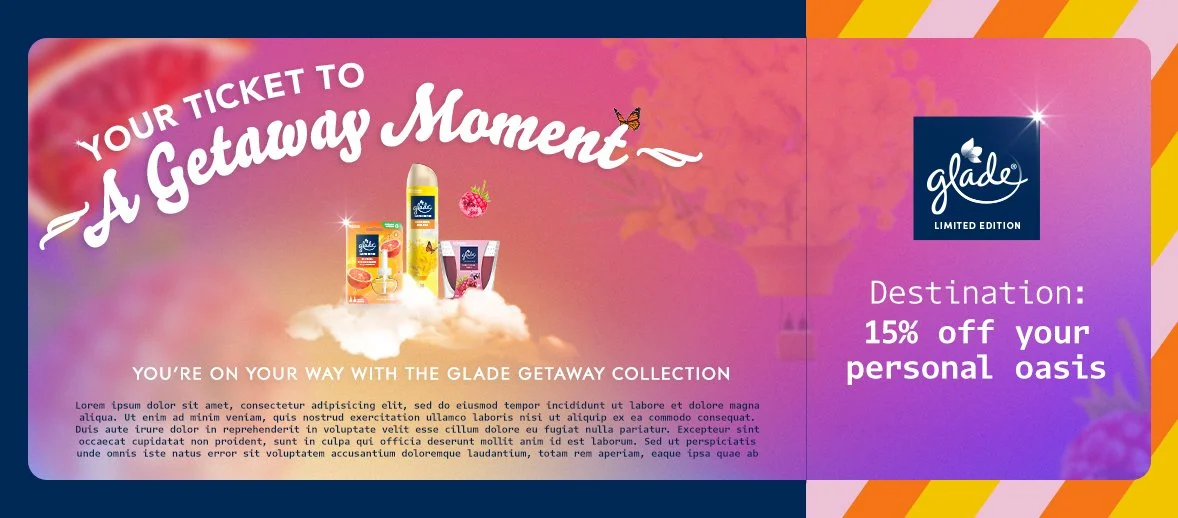 Make it a getaway from anywhere, including your couch, with Glade…starting with our key visual, designed to inform every other tactic built out for this campaign.